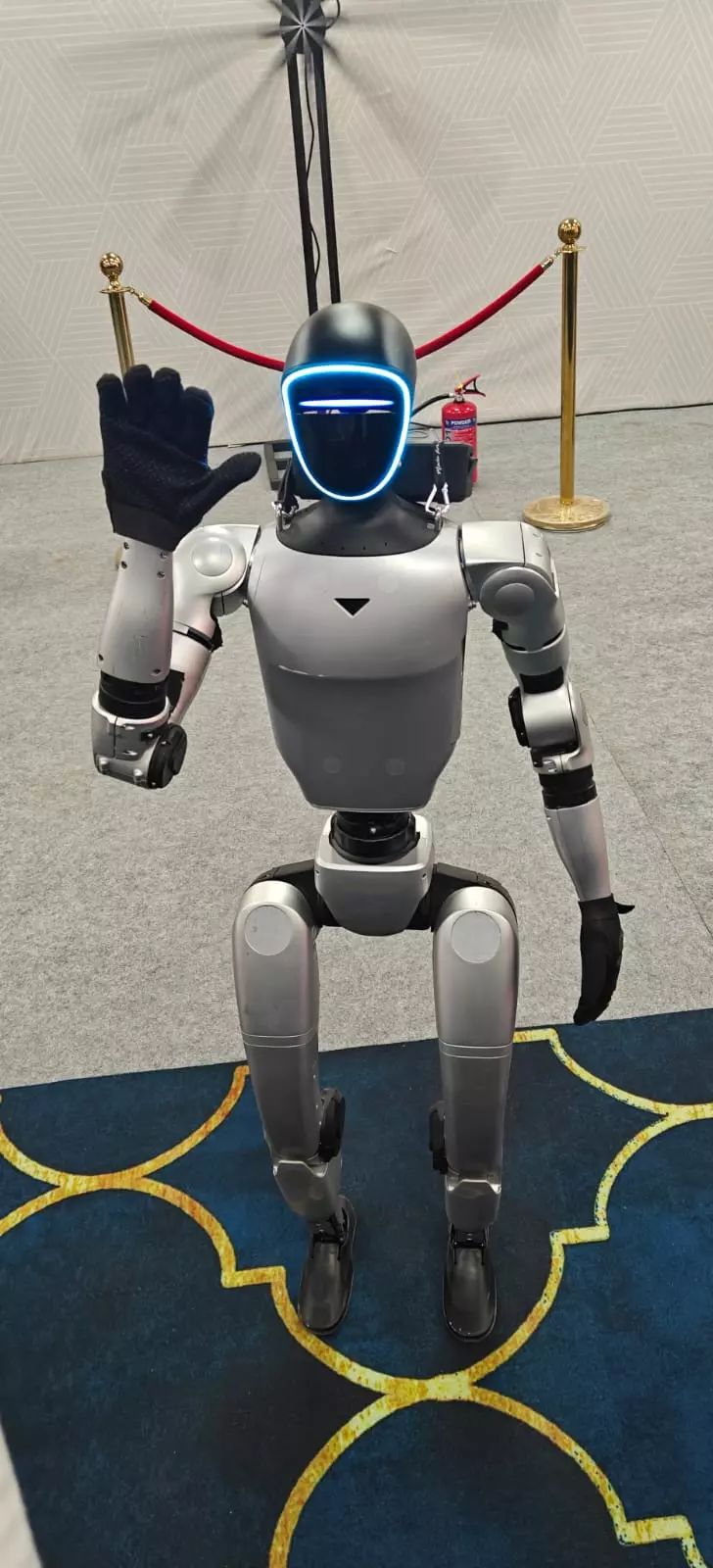 Humanoid robot ‘Ex Man’ from China greets delegates at the Bharat Future City entrance, bringing a futuristic edge to the Telangana Rising Global Summit 2025 and its Vision 2047 tech focus. Delegates pass the robot as they move toward the 5:30 pm panel discussions on frontier technologies and AI, central to Telangana’s $3 trillion economy ambition.