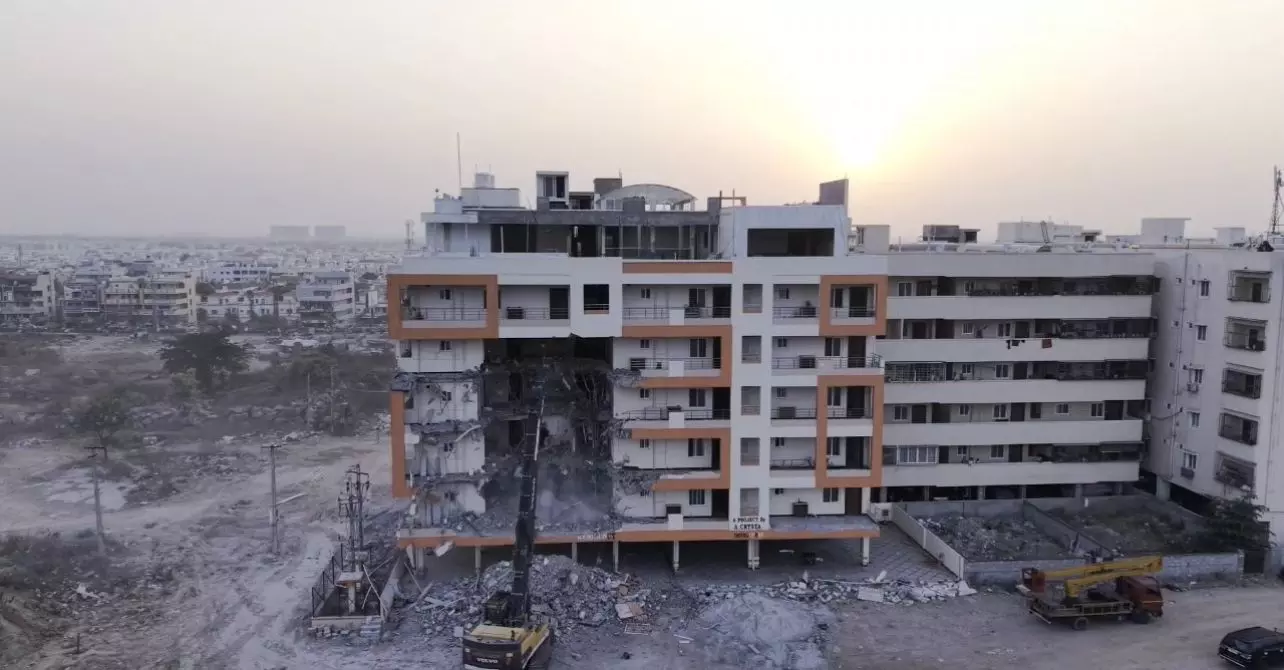 HYDERABAD: Scenes of panic and distress spread at KA Residency at Ilapur, after HYDRAA woke up residents just past dawn, told the residents that their apartments were being demolished, and began operations early on Saturday, waking up the residents. Tenants said they were not notified by their apartment management of notices served for the demolition and were shocked to find out their residence was set to be demolished.