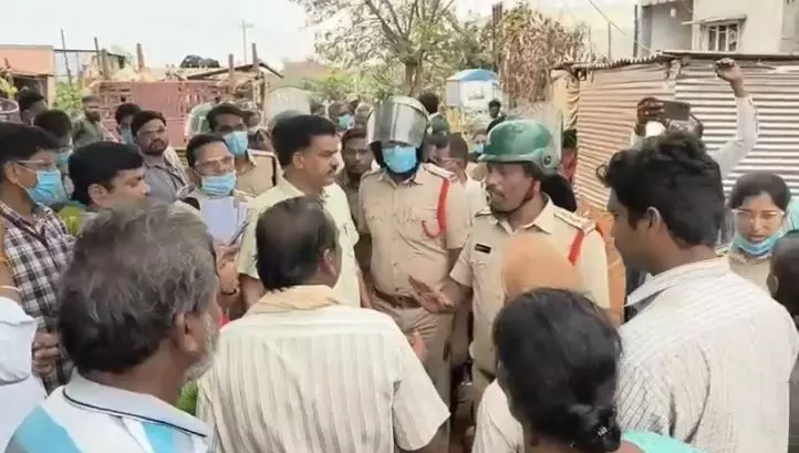 The residents are arguing with the police for removing their huts without prior information in Khammam district. (Photo: By Arrangement)