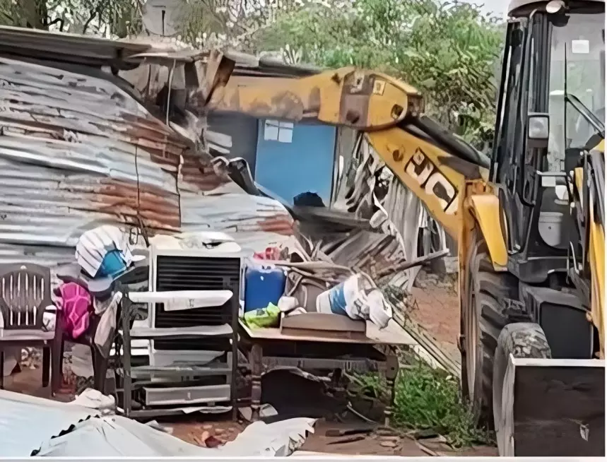 Additional district collector P. Srinivas Reddy clarified that the demolition followed Bhoodan Board directions. He said one Kalavala Raja Rama Rao donated 31 acres and seven guntas in 1953, and notices were issued in 2019 against encroachment.