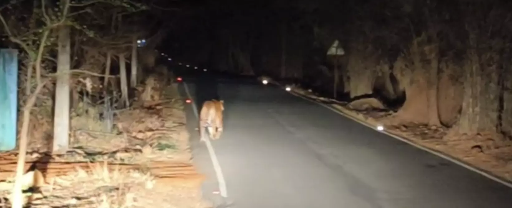The latest sighting occurred two nights ago when a forest patrol team spotted a tiger around 10 p.m. The animal walked along the road for nearly ten minutes. A few days earlier, another tiger was seen sitting by the roadside.