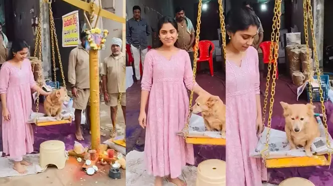 Warangal:A social media post by Tollywood actress Tina Shravya has triggered a sharp debate over religious sentiments and tribal traditions. She faced backlash after a video showed her performing the traditional Tulabharam ritual for her pet dog at the sacred shrine.