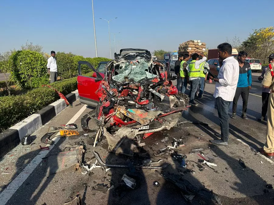 Here’s a strap for the combined headline: A fatal accident on the Outer Ring Road claimed two lives when a car collided with a tanker, while a separate reckless driving incident in Bachupally left shops damaged but no casualties