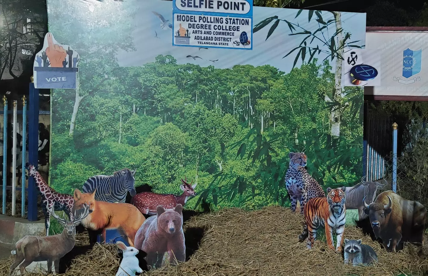 ADILABAD: Voters were greeted by images of wild animals at a model polling booth set up at the Government Degree College in Adilabad town during the municipal elections on Wednesday.