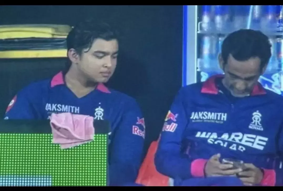 Bhinder was found scrolling his smart phone with teen sensation Vaibhav Sooryavanshi by his side in the dugout during the game against RCB.