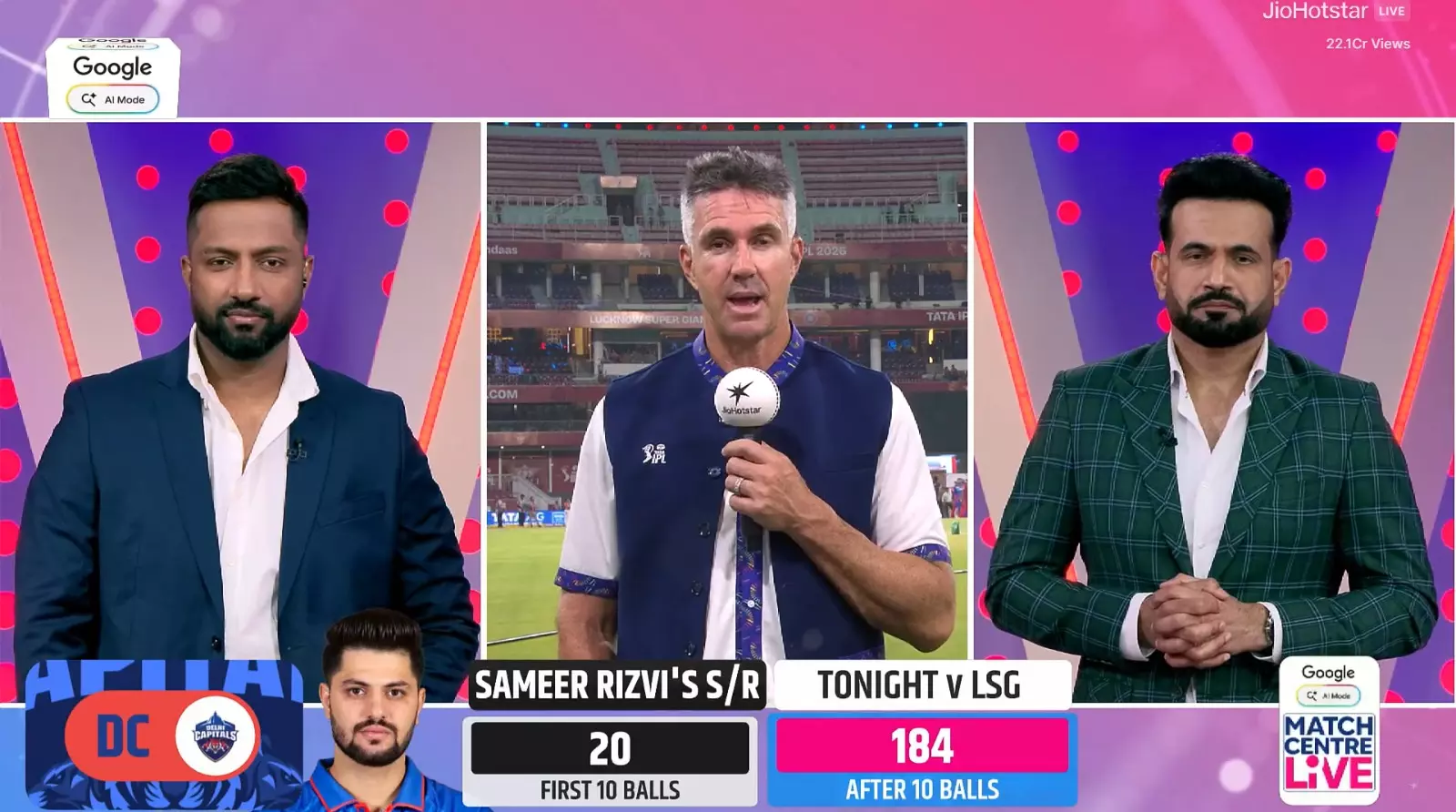 Delhi Capitals got off the mark in their opening game of TATA IPL 2026 with a nervy win against the Lucknow Super Giants. Speaking on JioHotstar’s ‘Google Search AI Mode Match Centre Live’, JioStar experts Kevin Pietersen and Irfan Pathan shared their thoughts on Sameer Rizvi’s coming-of-age knock, Rishabh Pant’s batting position, and DC’s last-minute change in the batting order, sending in Tristan Stubbs ahead of David Miller.