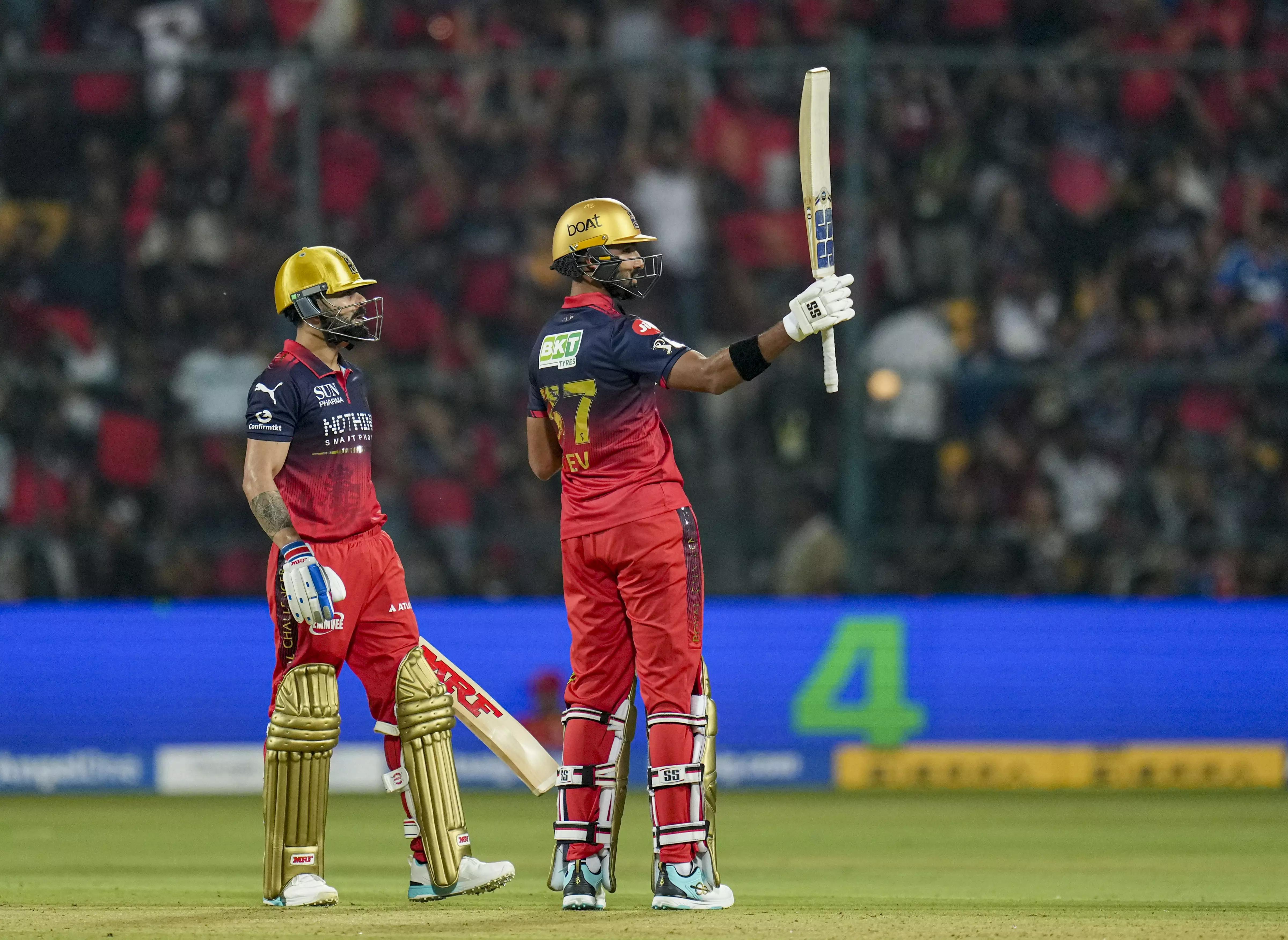 Royal Challengers Bengaluru (Playing XI): Virat Kohli, Philip Salt, Rajat Patidar(c), Jitesh Sharma(w), Tim David, Romario Shepherd, Krunal Pandya, Bhuvneshwar Kumar, Abhinandan Singh, Jacob Duffy, Suyash Sharma