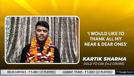 Speaking on ‘TATA IPL Auction Review’, CSK’s new addition Kartik Sharma commented on joining CSK for ₹14.20 crore: “First of all, a special thank you to all my family members & friends, without their support, I don’t think I would have reached this stage. My entire family is very happy, everyone is celebrating and dancing. I’m extremely excited to play alongside Mahendra Singh Dhoni and learn from him. When the bidding started, I was scared I might miss out. But as the bid kept going up, I started crying. Even after it ended, I couldn’t stop. I was overwhelmed with emotion and happiness, I honestly don’t know how to put it into words.”