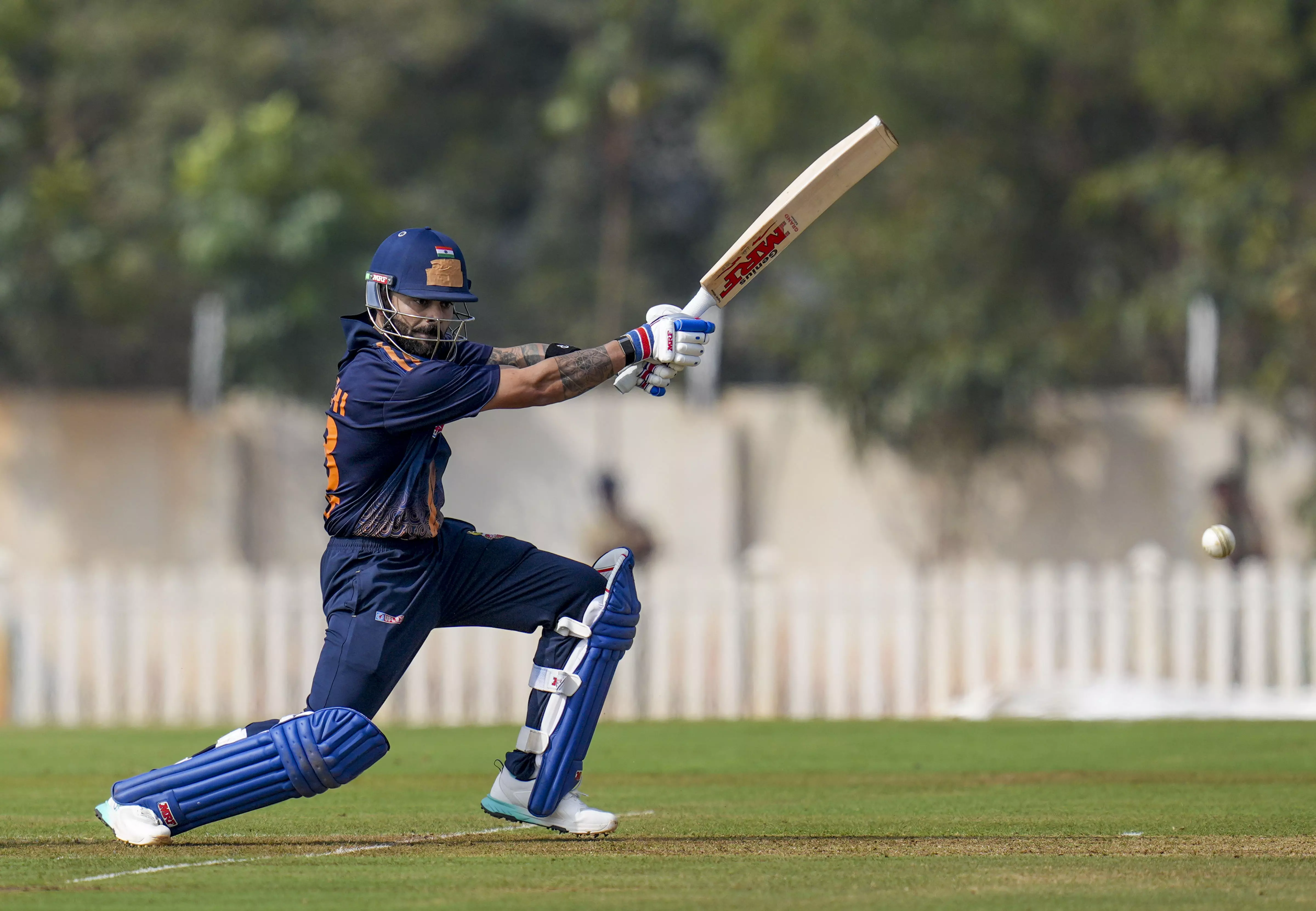 In another Vijay Hazare Trophy match in Bengaluru, Delhi took on Gujarat. Gujarat skipper chose to bowl first, and Delhi’s innings was anchored by Virat Kohli, who top-scored with 77 off 61 balls, hitting 13 fours and 1 six before getting out.