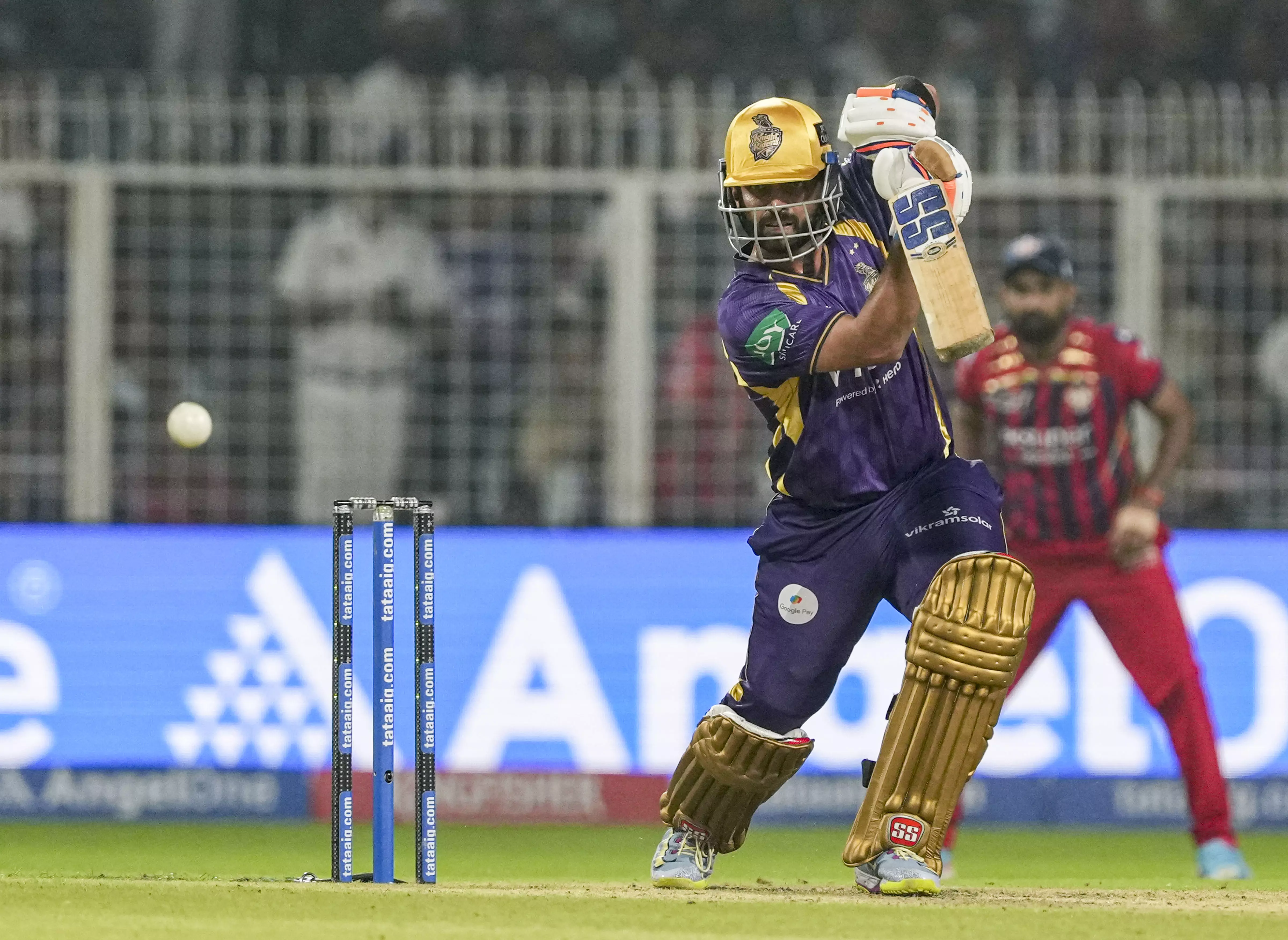 Lucknow Super Giants strike twice in quick succession as Kolkata Knight Riders lose two set batters. Angkrish Raghuvanshi departs for 45 off 33 balls.