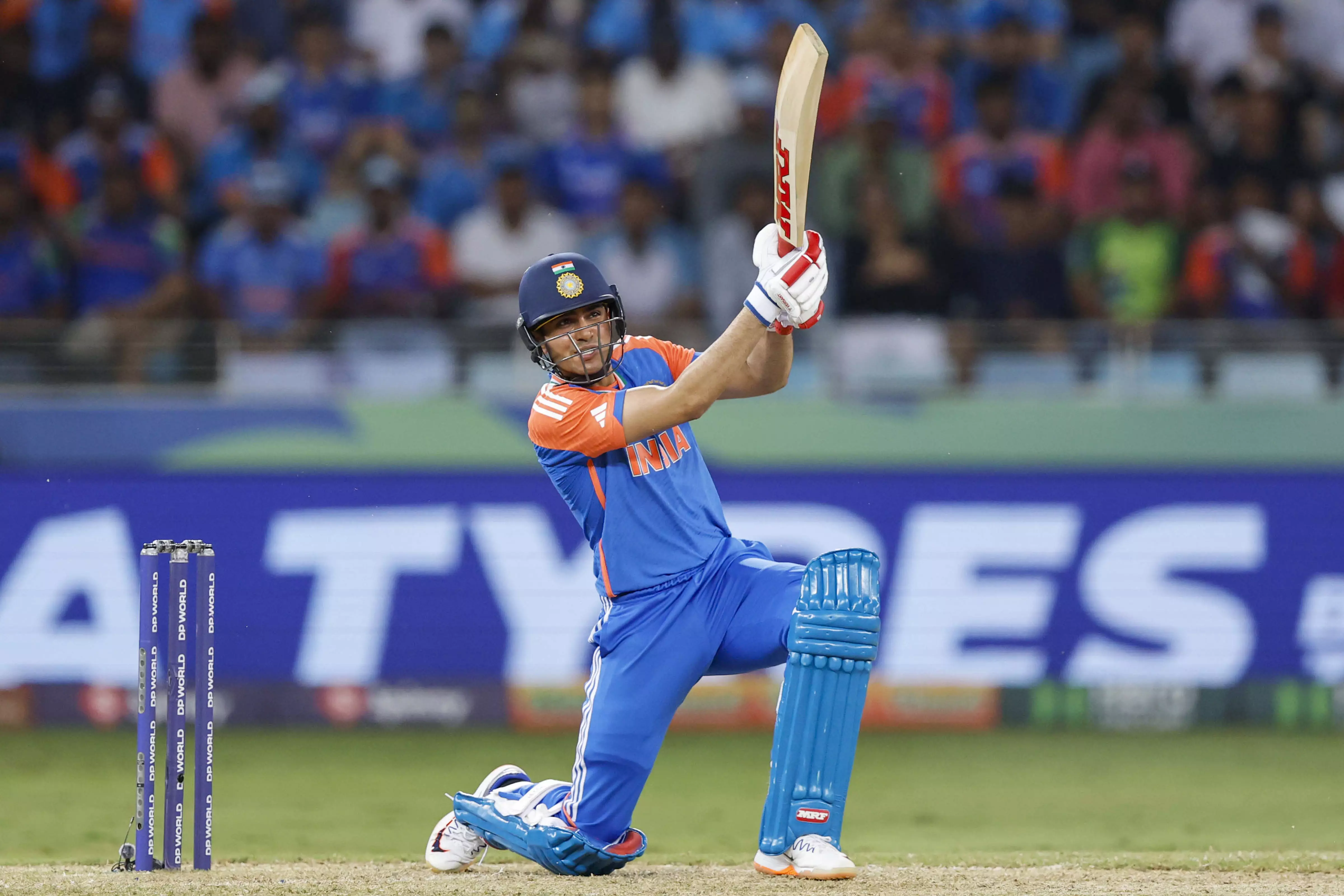 In this image released on Sept. 21, 2025, India's Shubman Gill plays a shot during the Asia Cup 2025 Super Four match between India and Pakistan, in Dubai, UAE. (Creimas/Asian Cricket Council via PTI Photo)