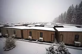 The homes were brought to Cortina by oversize-load trucks. All of the rooms are about 18 square meters (200 square feet), with one of the two rooms in each mobile home slightly larger than the other to accommodate Paralympians.