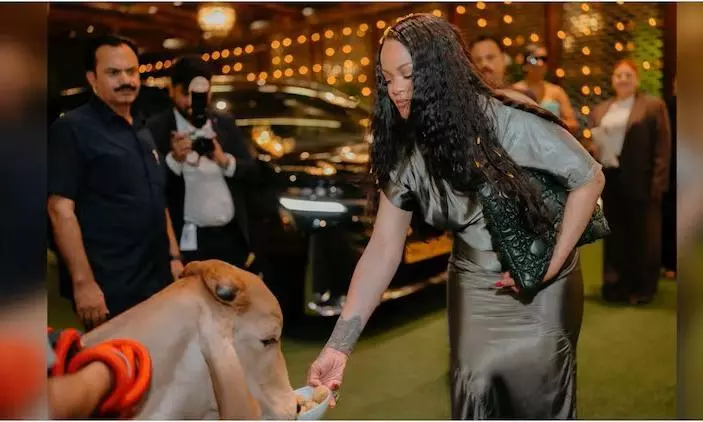 Rihanna’s flash visit to Mumbai saw her gain a whole lot of fans, thanks to her friendly demeanour, but one incident has dented her image in the country. The singer was seen feeding a cow outside Antilia, the Ambani residence. Netizens immediately noticed the handbag she was carrying. According to designer-label experts, it was a luxury Dior Crunchy bag primarily made from calfskin leather.