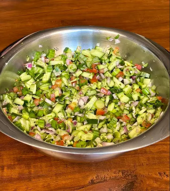 Chop all the veggies and season with salt, black pepper, and fresh lemon juice. Let it rest for a few minutes so the vegetables release their natural moisture. Top with chat masala