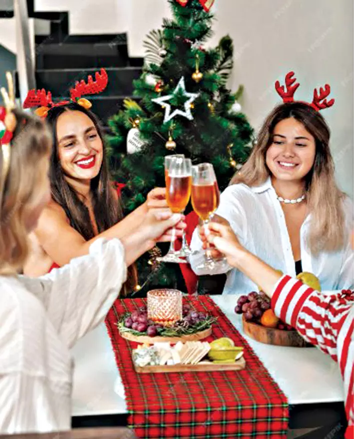 Fresh juices elevate the Christmas feast. Freeze juice into festive ice cubes (orange, cranberry, or watermelon) so drinks stay chilled without dilution. “Mix citrus juices with sparkling water for instant fizz, or blend watermelon, berries, or pineapple for colourful spritzers. Add herbs like mint, basil, or rosemary and rim glasses with sugar, cinnamon or Tajin. Keep a base pitcher with orange-cranberry, lime-mint, or apple-spice, and let guests top it up with soda or tonic,” adds Rai.