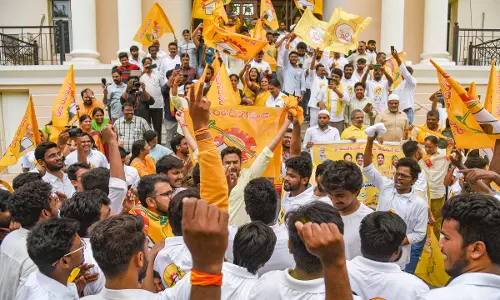 TDP workers begin celebrations at NTR Bhavan in Hyderabad