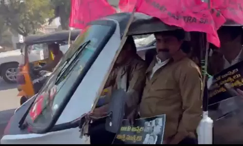BRS legislators take out rally in Auto-rickshaws