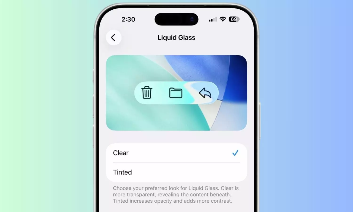 Users can now choose between two Liquid Glass options: Clear and Tinted.