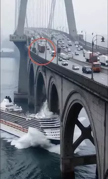 A viral video, posted by accounts like GPX Press, falsely claims a bridge in Norway collapsed 24 hours after opening due to a cruise ship collision, with hundreds of cars plunging into the water and an unknown number of victims. No such event occurred; the footage is AI-generated.