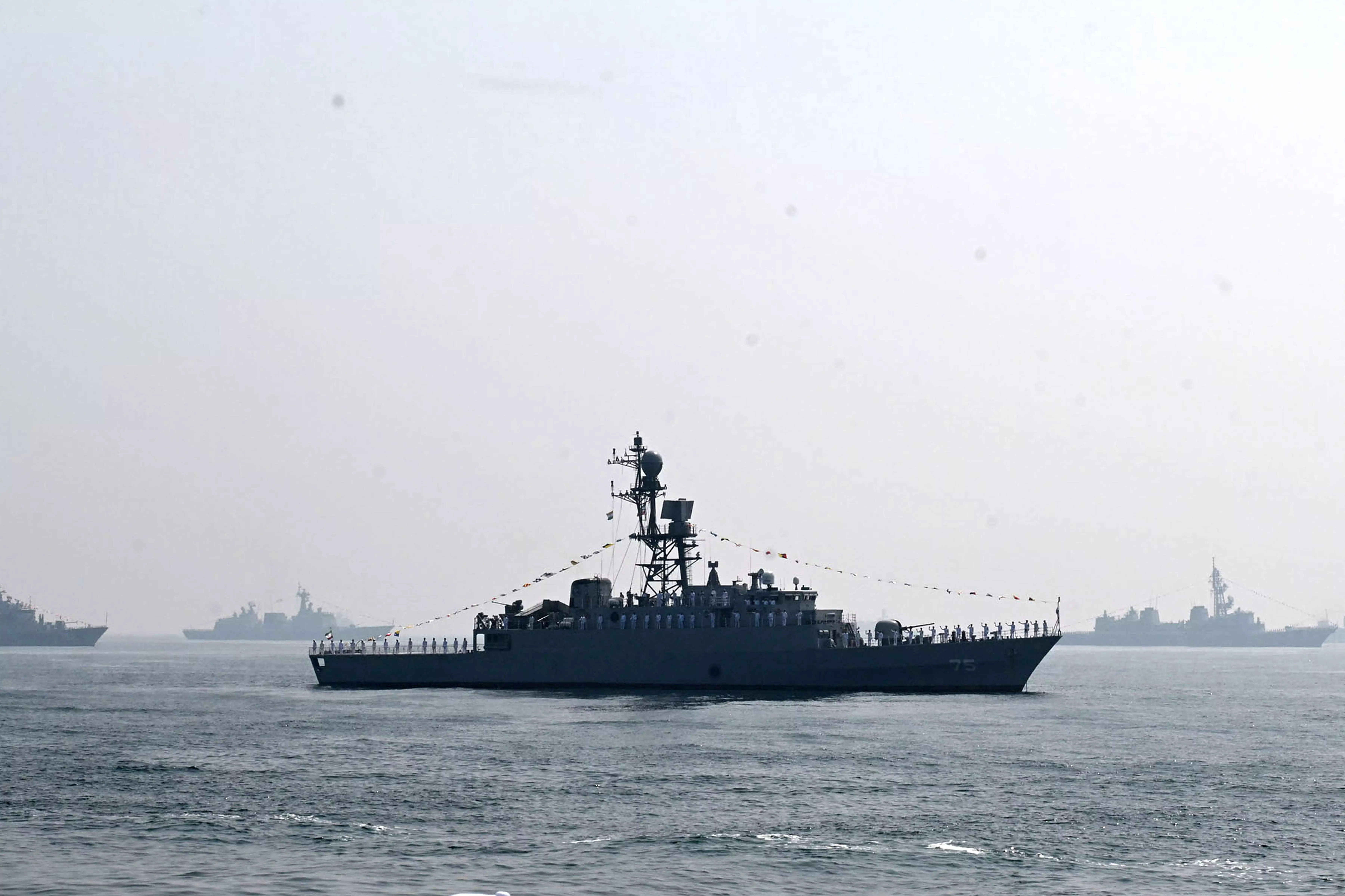 IRIS Dena is seen in the Bay of Bengal during International Fleet Review held at Visakhapatnam, India, Feb. 18, 2026. (AP Photo)