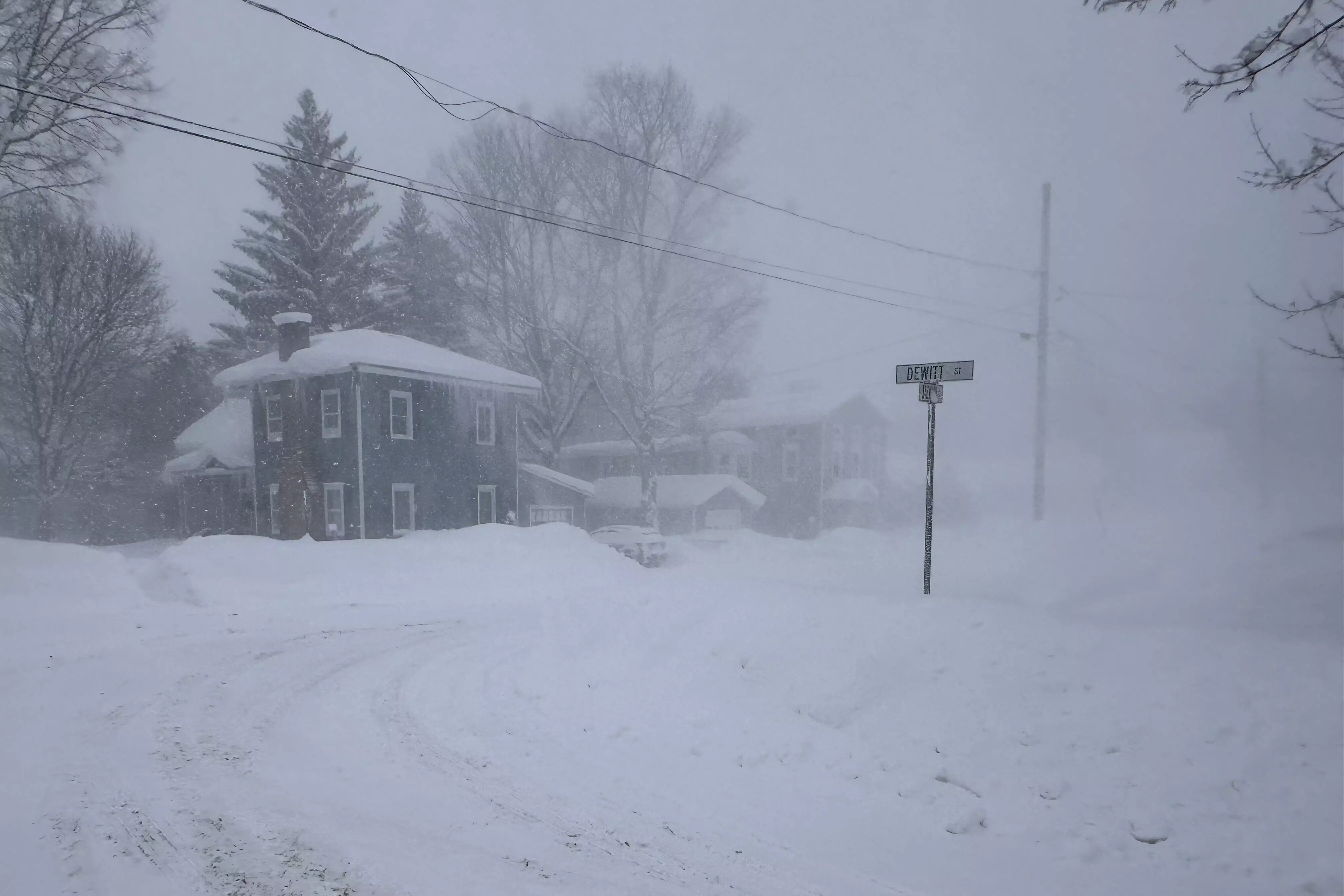 Strong winds kick up snow in Lowville, New York (AP Photo/Cara Anna)