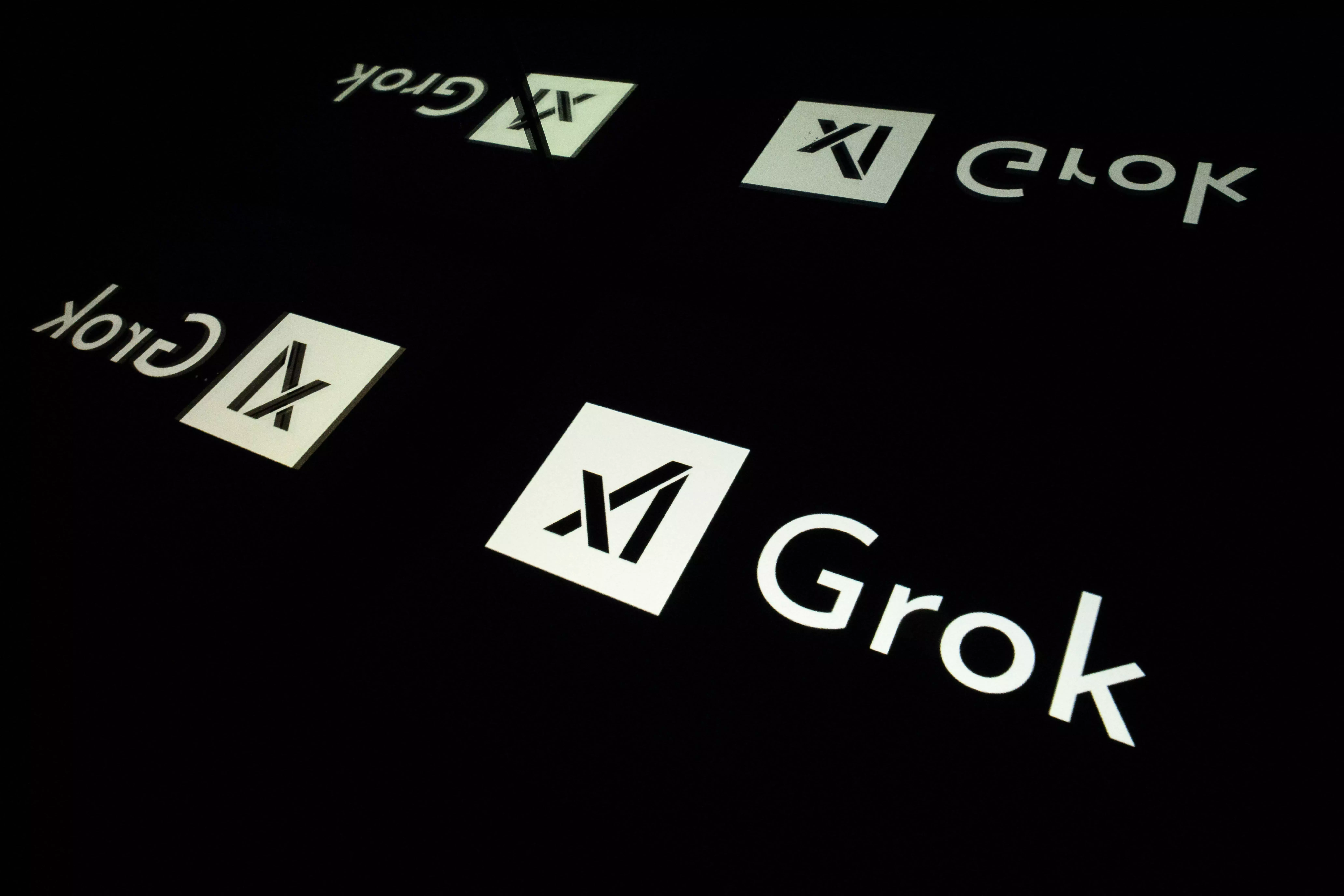 Screens displaying the logo of Grok, a generative artificial intelligence chatbot developed by US artificial intelligence company xAI, in Toulouse, southern France ( Lionel BONAVENTURE / AFP file)