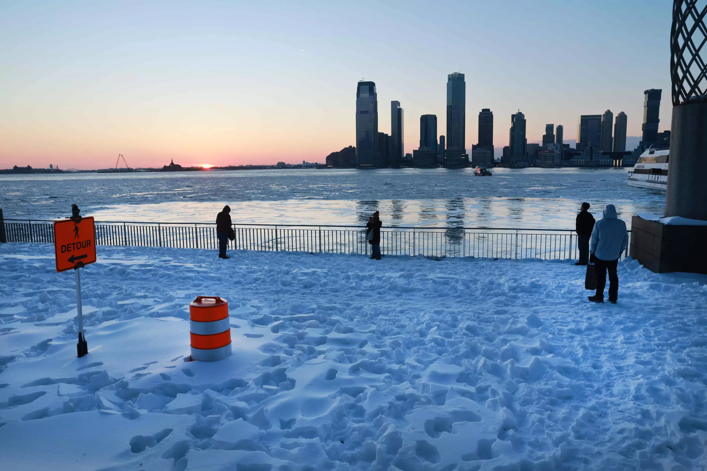 People watch as ice floats cover part of the Hudson River along the Manhattan shoreline as New York City experiences frigid temperatures following a winter storm over the weekend (AFP)