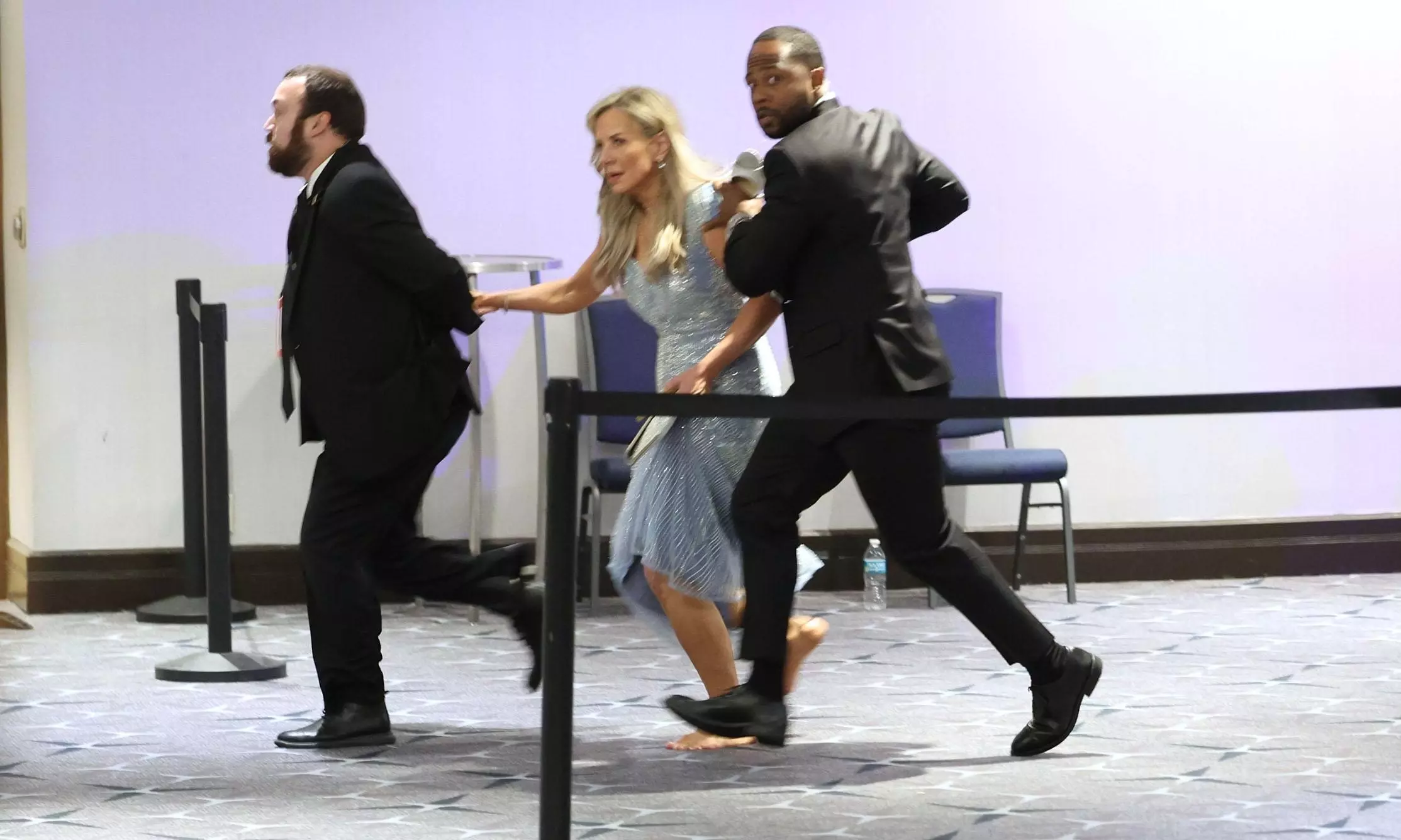 Secret Service agents quickly rushed Trump and Vance off the long head table, though the protective agents for many cabinet members and lawmakers - seated on the floor with the journalists and their guests - reacted in different fashions. Some agents clambered through the packed ballroom, standing on chairs and overturning tableware to reach protectees, while bewildered guests ducked under tables.