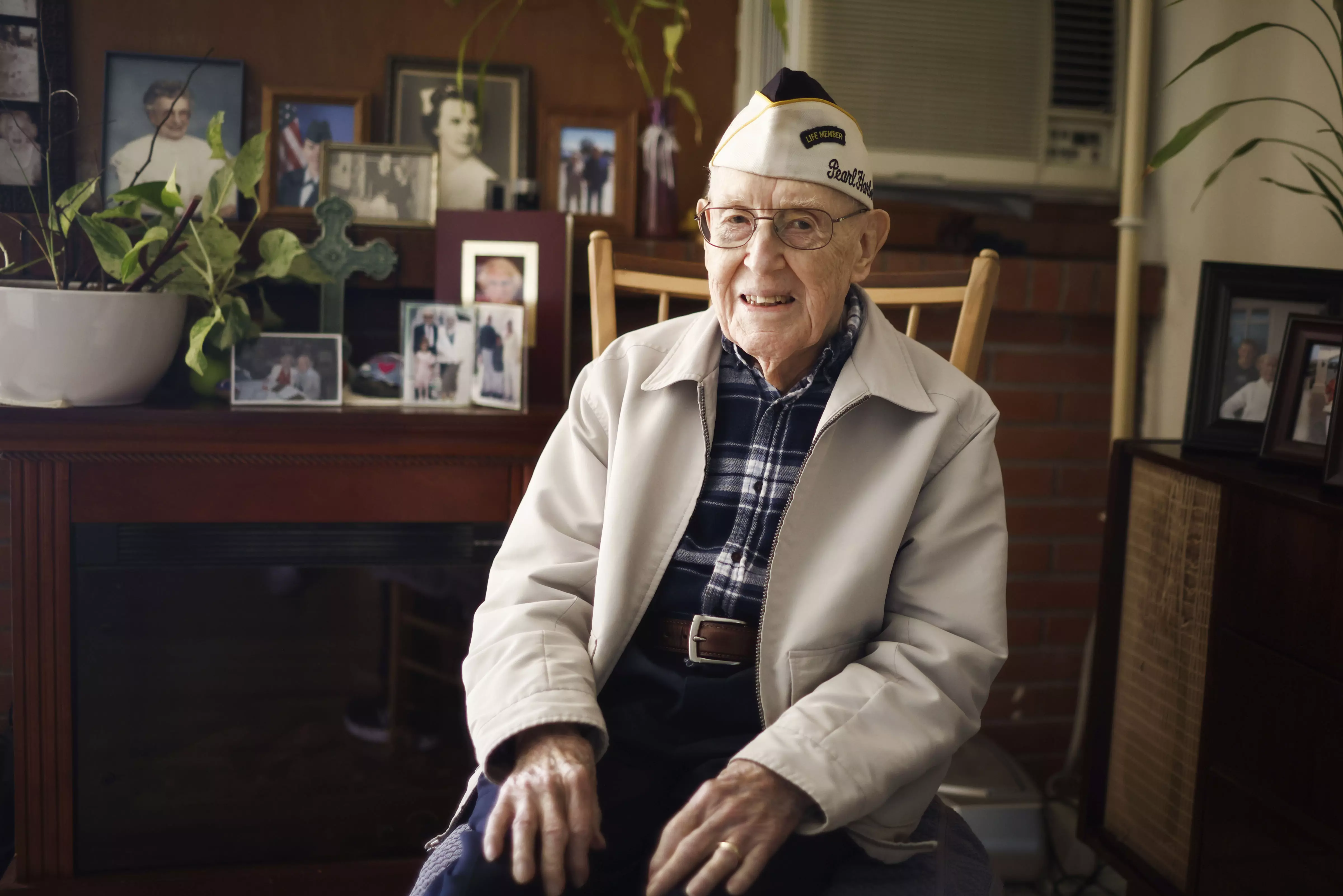 USS Utah Survivor Warren Upton sits for a portrait at his home in San Jose, California (AP file photo)