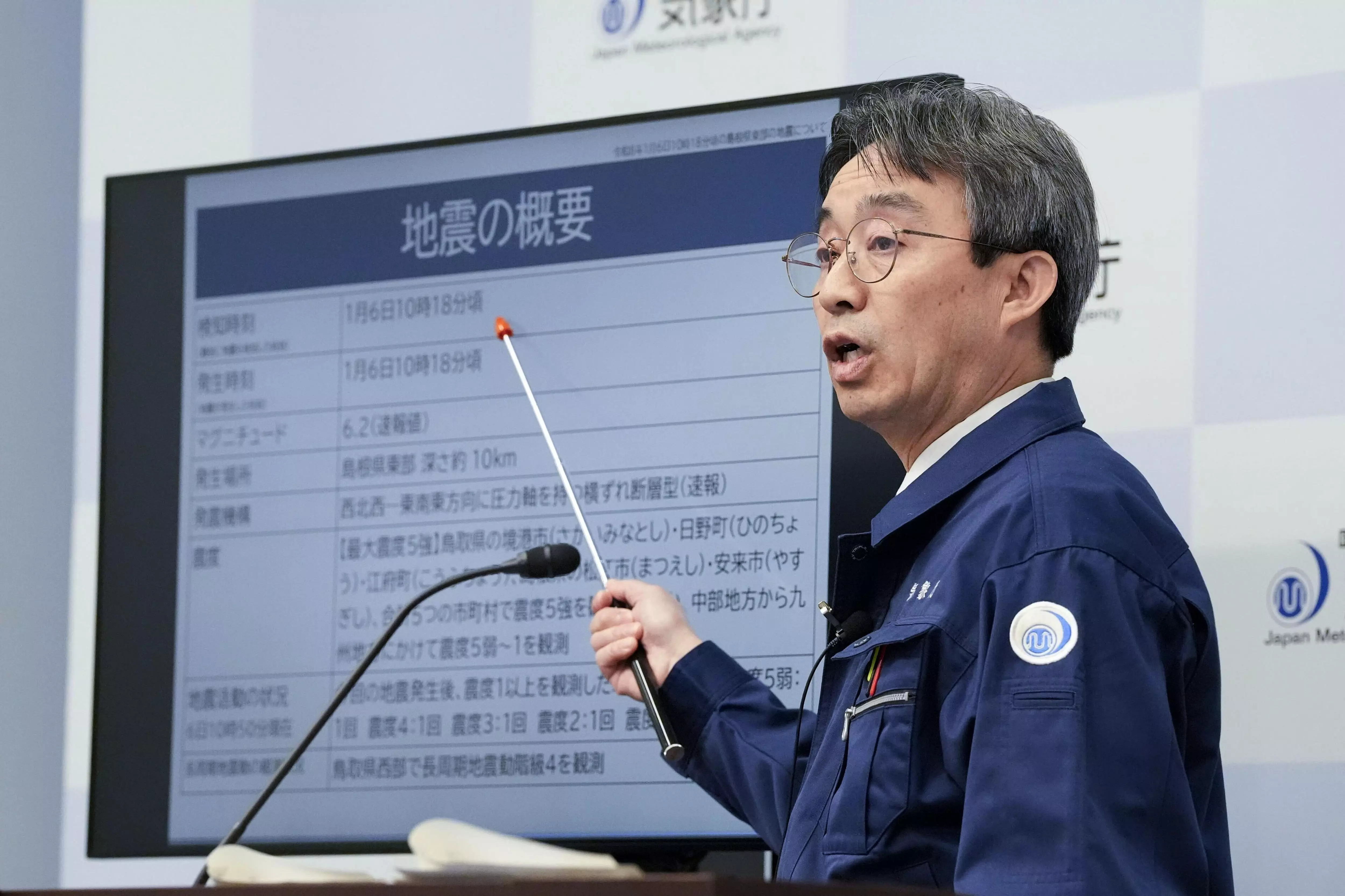 A spokesperson gives a press conference at the the Japan Meteorological Agency in Tokyo, after a strong earthquake hit western Japan. (Shinji Kouchi/Kyodo News via AP)