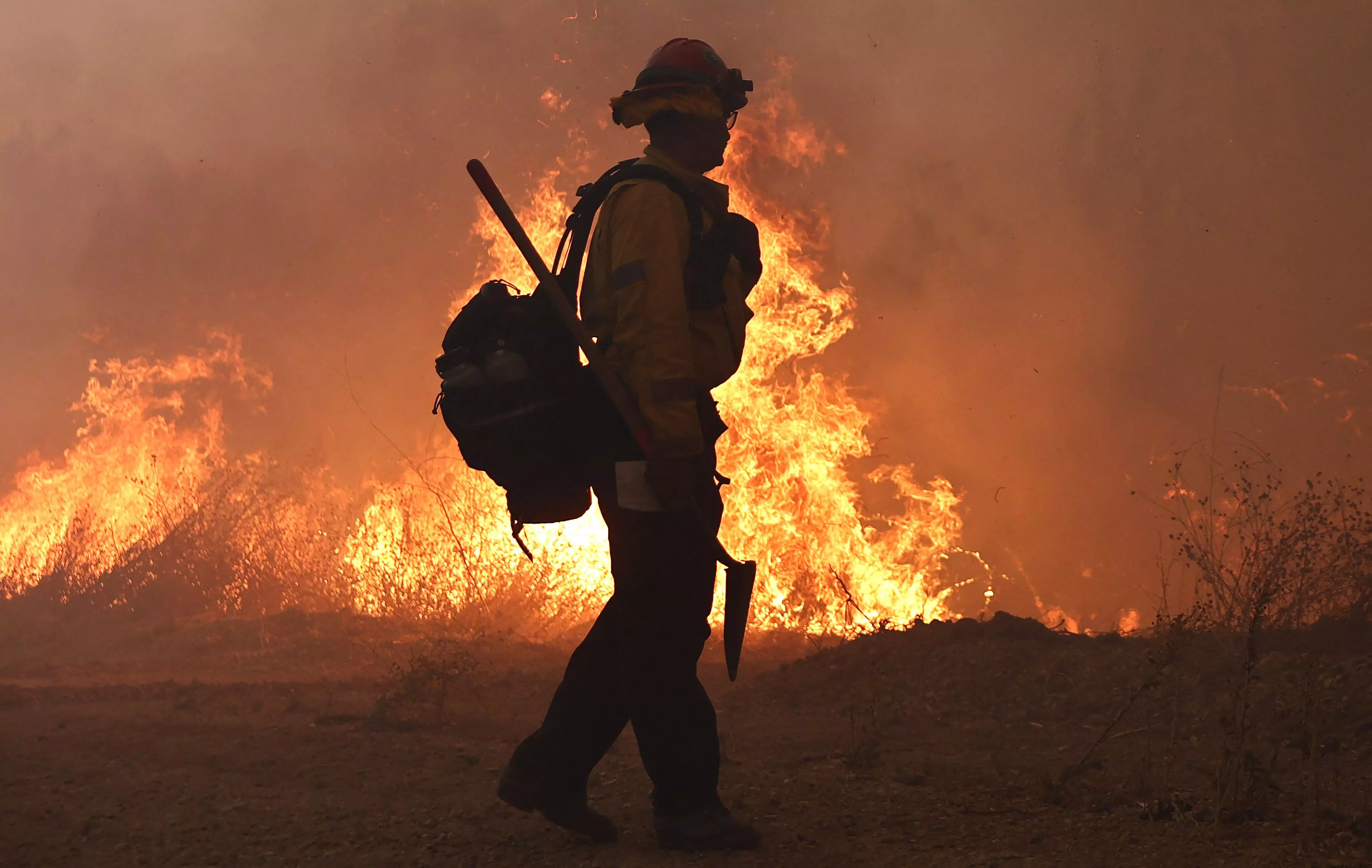 California wildfire burns out of control but firefighters could get a break when winds diminish
