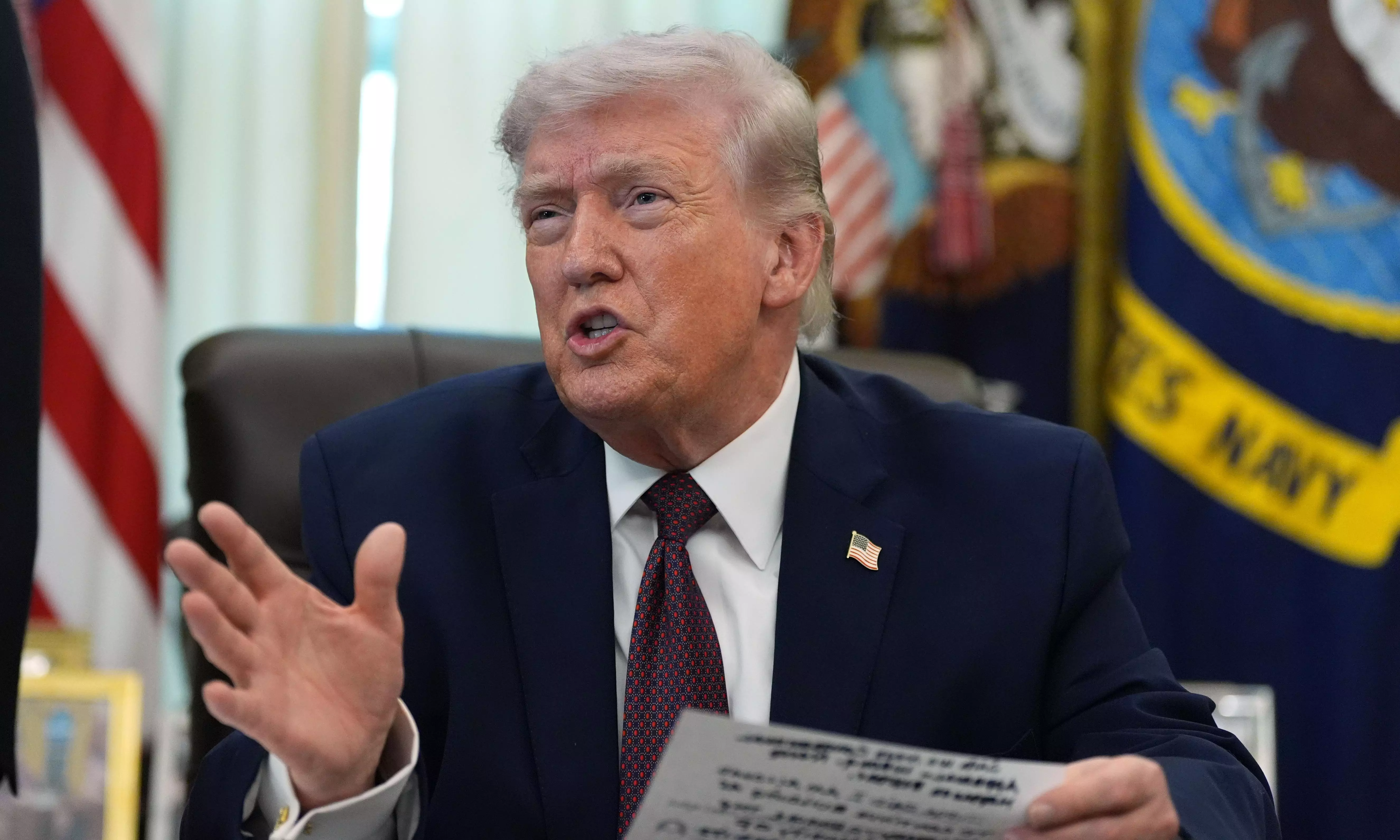 President Donald Trump answers questions from reporters after signing an executive order in the Oval Office of the White House Tuesday, March 31, 2026, in Washington. (AP/PTI Photo)
