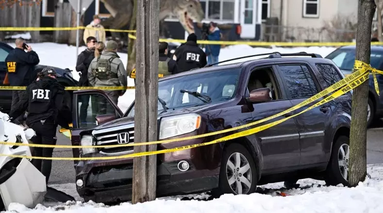 The Department of Homeland Security said in a statement on the social media platform X that federal law enforcement officers stopped a person from Venezuela who was in the U.S. illegally. The person drove away and crashed into a parked car before taking off on foot, DHS said.