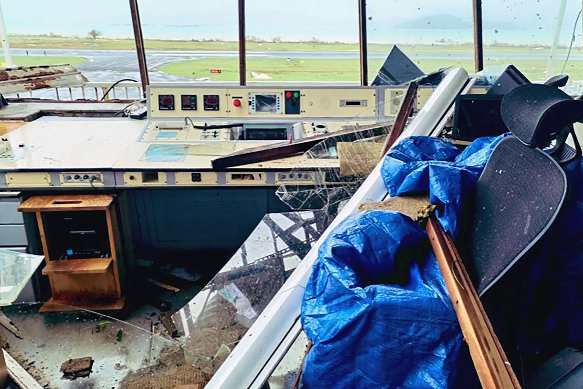 Handout photograph taken and released by the General Direction of the civil aviation on December 14, 2024 shows damage in the control tower at the airport in Pamandzi, hours after Cyclone Chido batterred the French Indian Ocean island of Mayotte with winds of up to 220 kilometres (137 miles) per hour. (AFP)