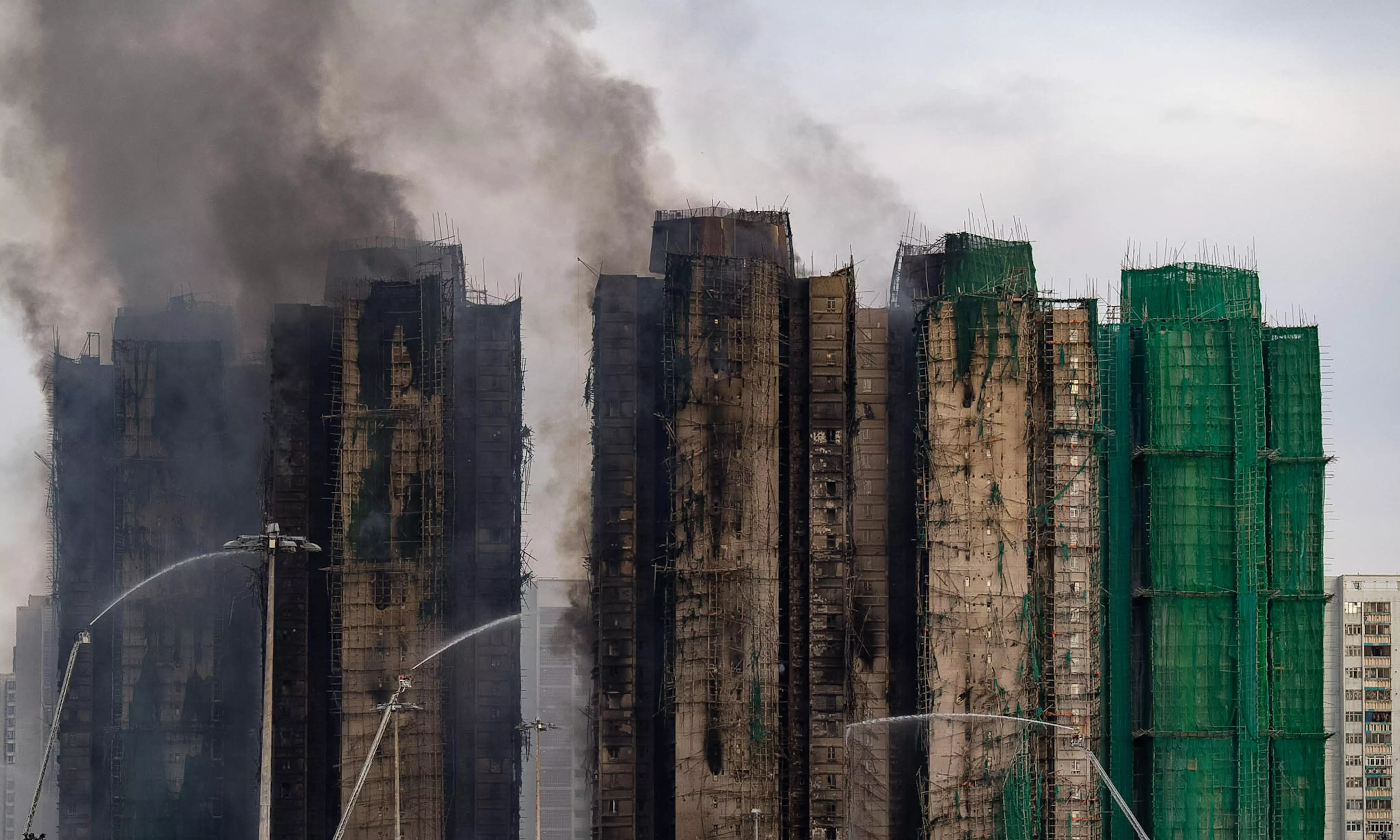 The fire started midafternoon Wednesday in one of the Wang Fuk Court complex's eight towers, jumping rapidly from one to the next as bamboo scaffolding covered in netting in place for renovations caught ablaze until seven buildings were engulfed.