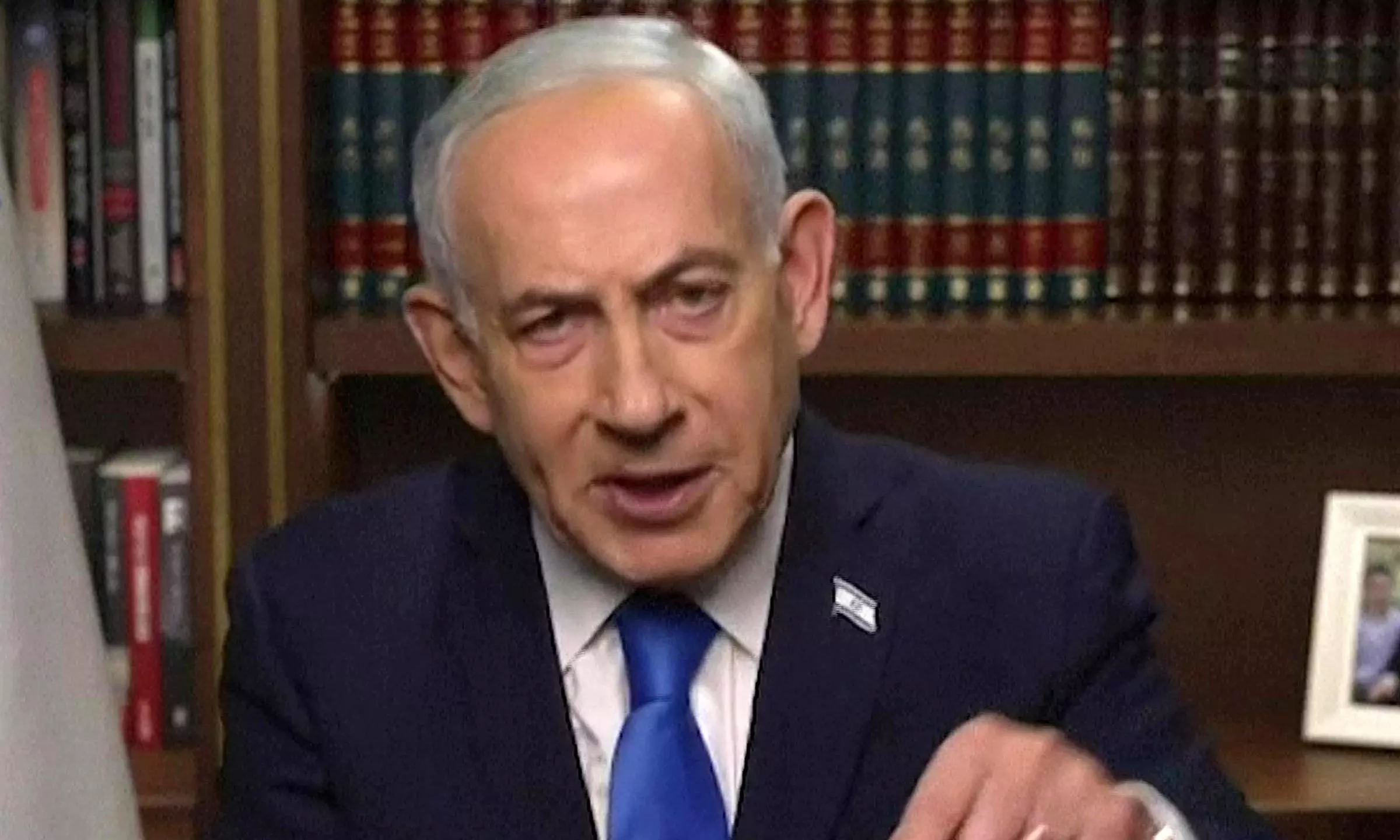 This grab from handout video released by Israel's Government Press Office (GPO) shows Prime Minister Benjamin Netnayahu giving a televised address from his office in Jerusalem on February 28, 2026. (Photo by GPO / AFP)