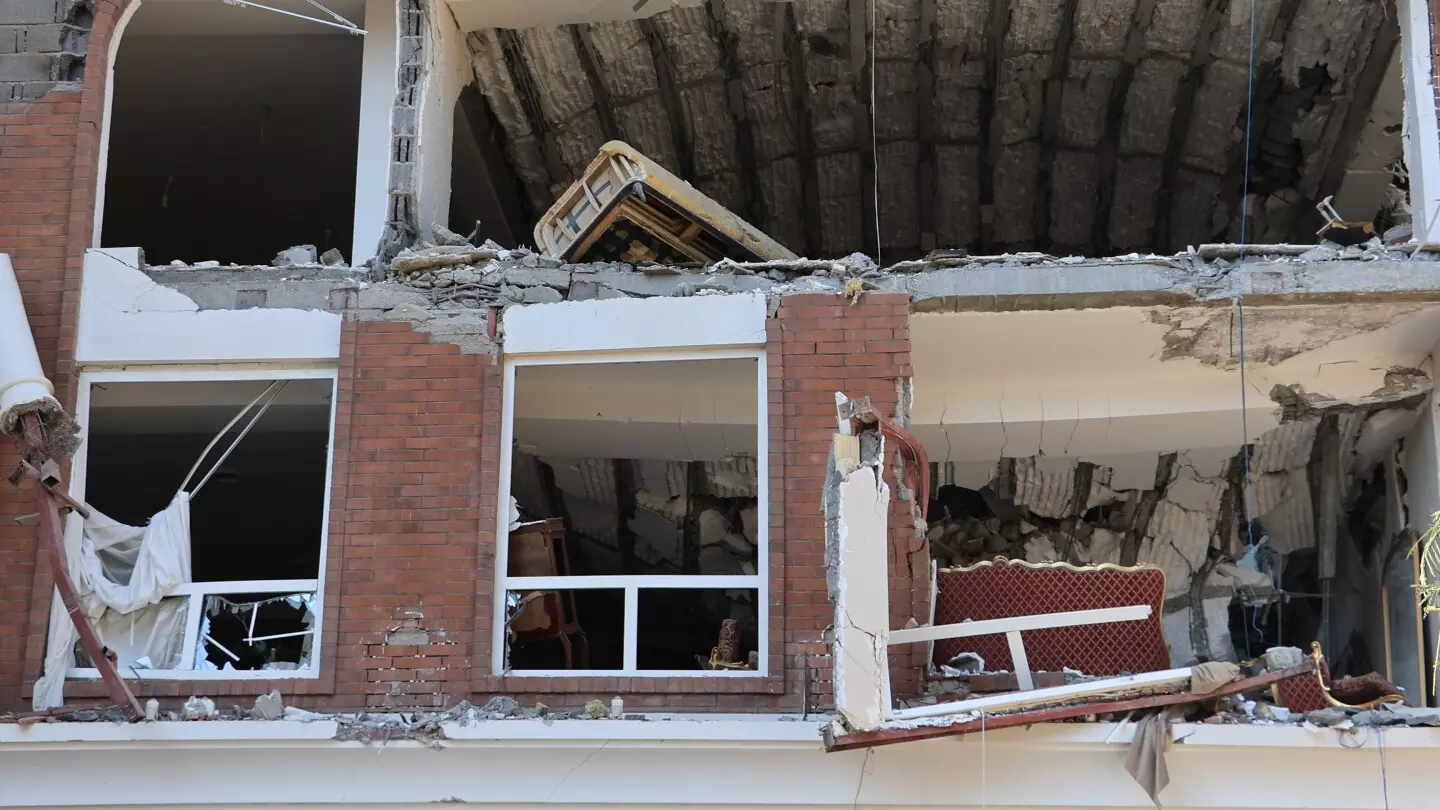 A video published on social media showed people standing among debris and wrecked cars in front of a damaged building following the explosion.