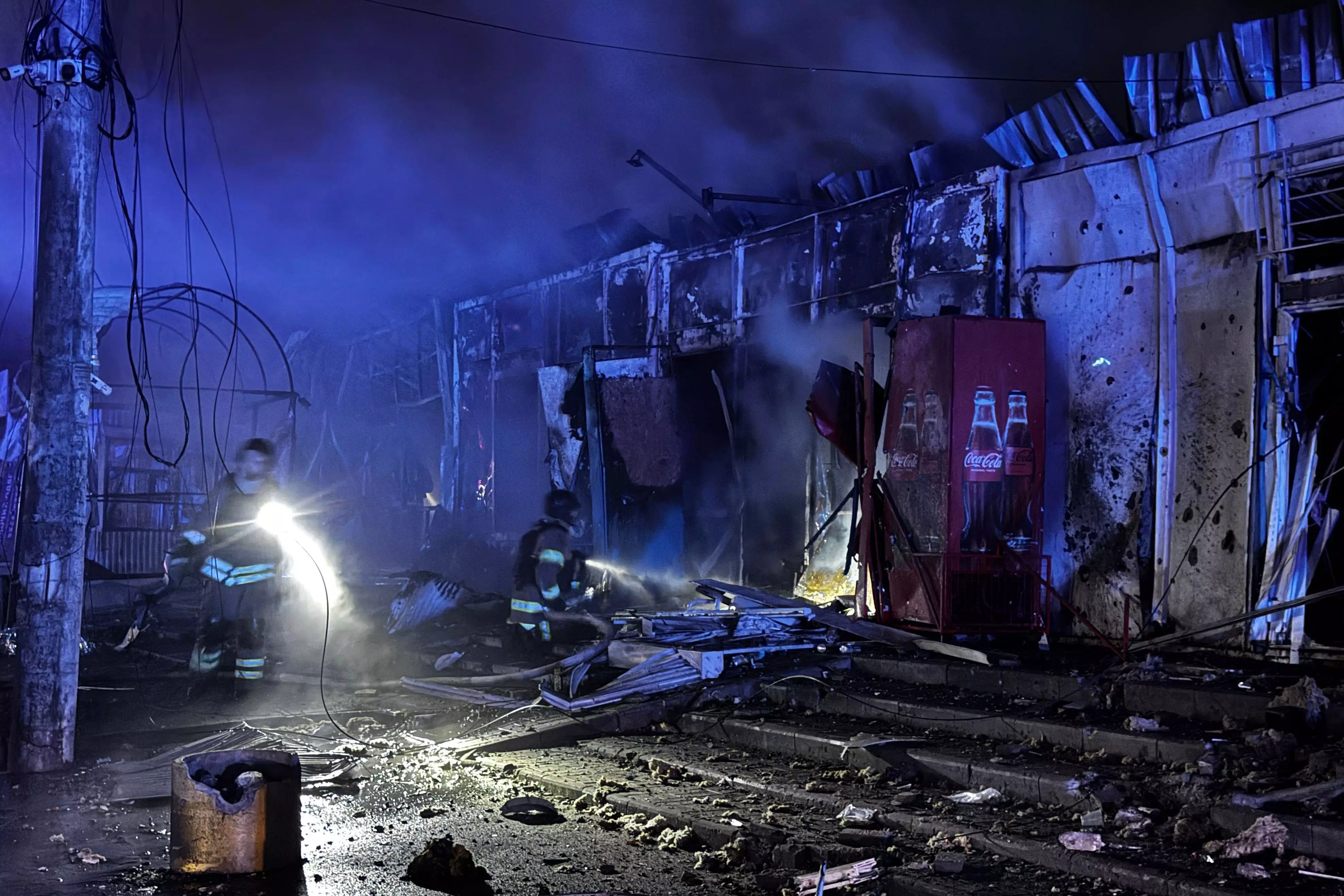 Ukrainian rescuers work at the site of an air attack in Zaporizhzhia, on November 20, 2025, amid the Russian invasion of Ukraine. (Photo by AFP)