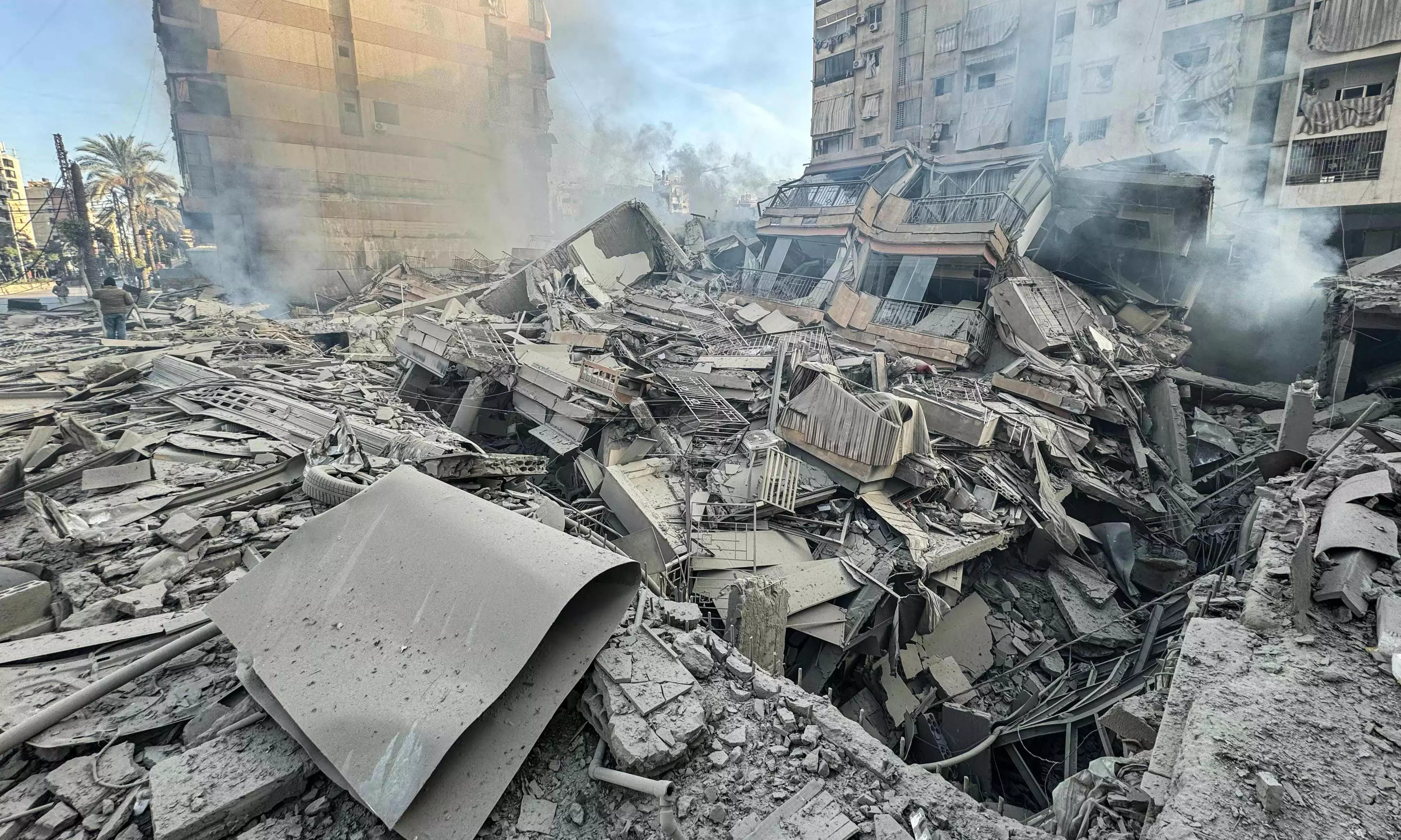 The site of overnight Israeli airstrikes is pictured in the southern suburbs of Beirut on March 6, 2026. (Photo by AFP)