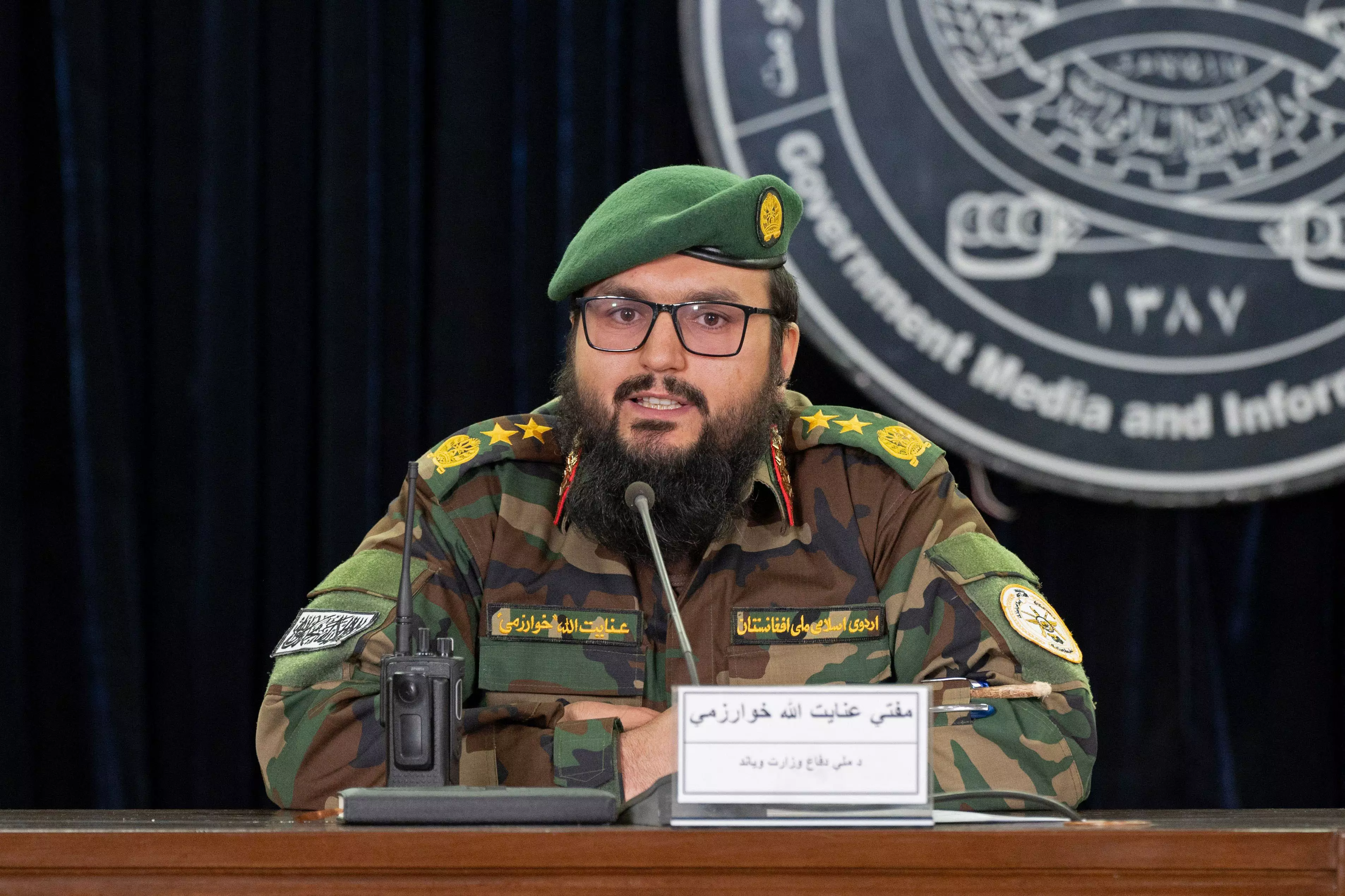 Taliban Defence Ministry spokesman Enayatullah Khowarazmi addresses a press conference (Wakil KOHSAR / AFP)