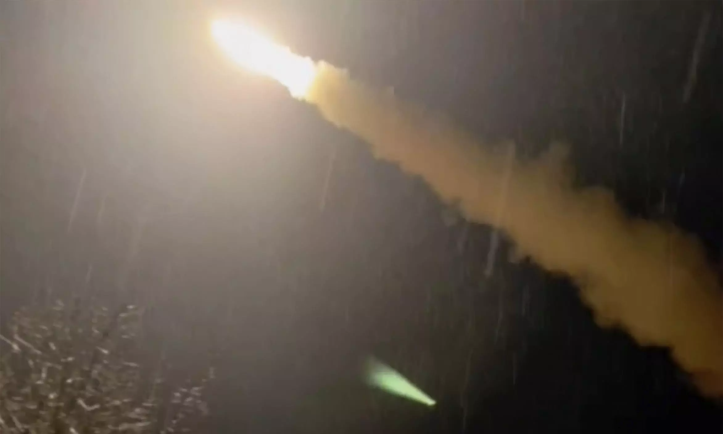 Screengrab from a video posted by a Telegram channel affiliated with the Ukrainian military on Tuesday, Nov. 19, 2024. The channel says it shows a U.S.-supplied ATACMS missile being fired from an undisclosed location in Ukraine. (Image via Associated Press)